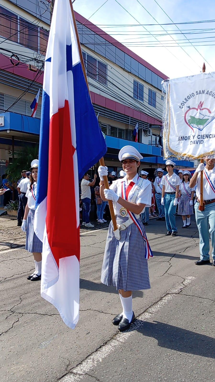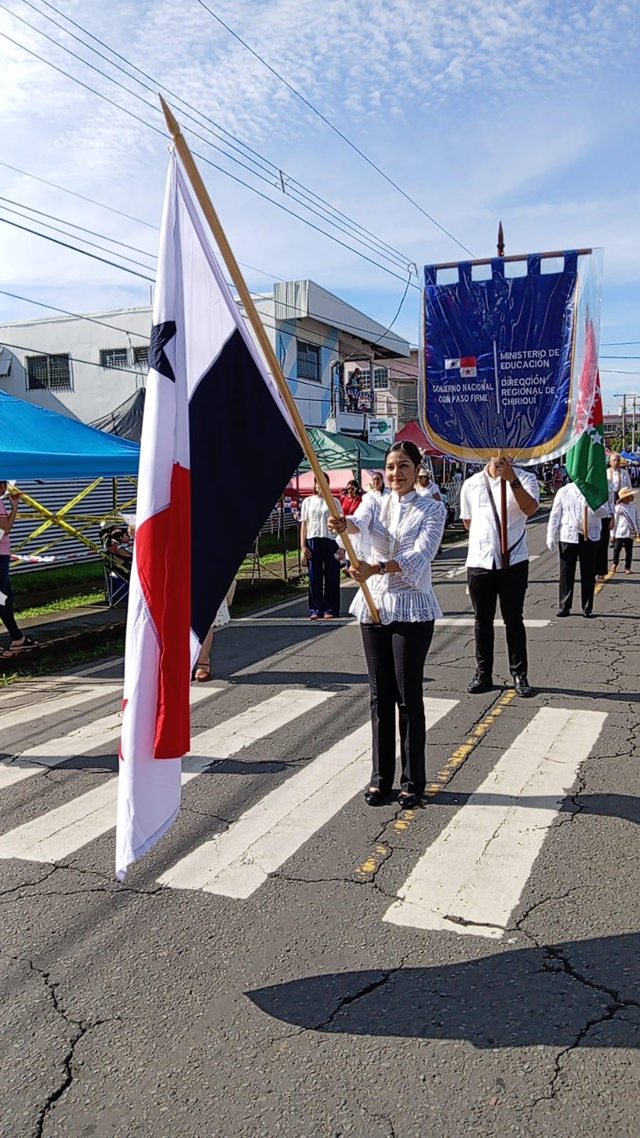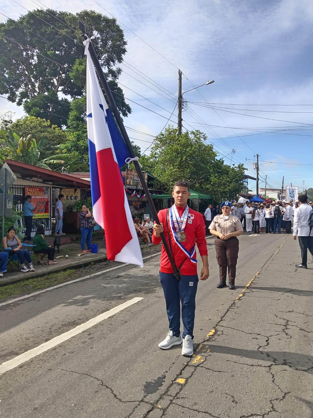 El abanderado del desfile fue el estudiante Ángel Martínez, del IPT David, quien portó con orgullo el Pabellón Nacional, representando a la juventud chiricana comprometida con los valores patrios.